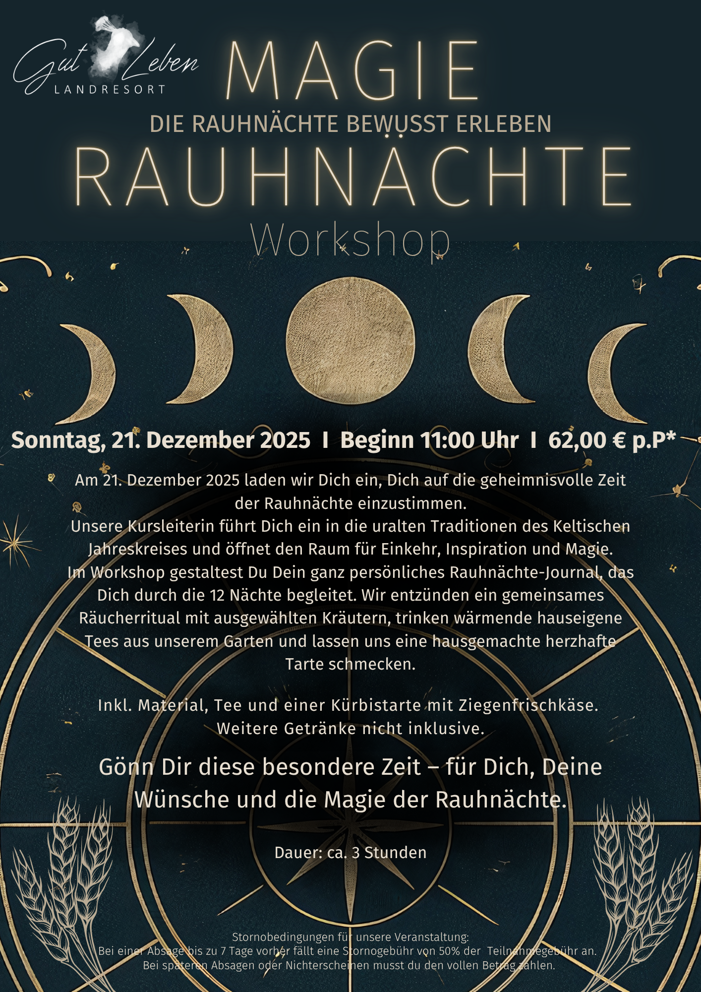 Preis: 630,- € Early Bird Preis / ab 30.10.2025 660,- € inkl. Küchenparty und Neujahrsfrühstück